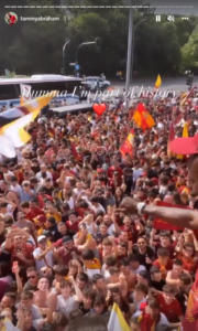 Tammy Abraham è stato uno dei giocatori più acclamati nel pomeriggio romano. Tantissimi cori per l’attaccante che ha risposto. Nelle sue storie scrive: “Mamma faccio parte della storia“, rimanendo impressionato dall’amore dei romanisti per tutto il percorso.