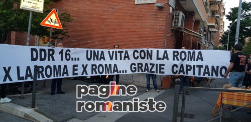 Continuano le dimostrazioni d’affetto nei confronti di Daniele De Rossi. Tra le tante manifestazioni in onore del numero 16, in serata è comparso un nuovo striscione per il capitano, posizionato in Via Vetulonia e recante la scritta: “DDR 16 una vita con la Roma, per la Roma e per Roma. Grazie di tutto“.