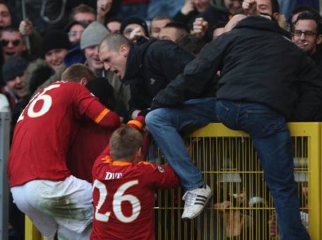 Merito di quella soddisfazione la do anche a mister Ranieri, che mi diede tanta fiducia in quella stagione. Roma-Siena, mancavano due minuti alla fine, io ero subentrato un quarto d’ora prima a Taddei. Il risultato era fermo sull’1-1. Raccolsi un lancio di De Rossi dal centrocampo, misi la palla a terra e con il sinistro piazzai un cross basso al centro dell’area di rigore. Lì c’era Okaka che, col tacco, superò Curci. Un boato incredibile allo stadio e un De Rossi impazzito di gioia sotto la Curva Sud con me e Okaka. Ancora oggi conservo una foto di quel momento….