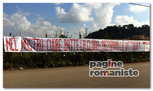 10.50 – Esposto fuori dai cancelli del quartier generale giallorosso uno striscione che recita così: “Nei nostri cuori batte la gloria… Prepariamo la vittoria”.