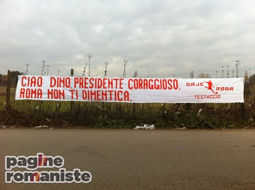 15.00 – Striscione in onore di Dino Viola esposto dai tifosi fuori dai cancelli di Trigoria: “Caro Dino, presidente coraggioso. Roma non ti dimentica”.