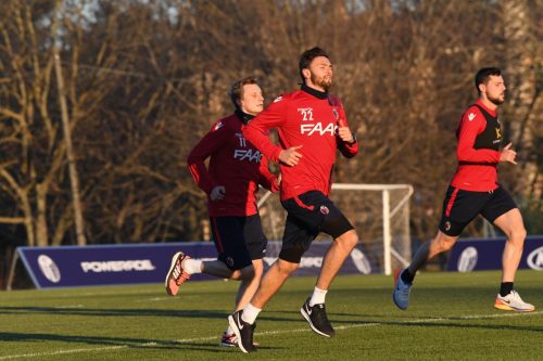 La squadra ha lavorato questa mattina a Casteldebole a metà della settimana che conduce al match Bologna-Roma. Dapprima riscaldamento in palestra e allenamento specifico sulla forza, quindi in campo i rossoblù si sono cimentati in una serie di esercitazioni sul possesso palla e sulle ripartenze. Luca Rizzo è rientrato in gruppo e ha lavorato regolarmente con i compagni. Lo riferisce il sito ufficiale del club felsineo.