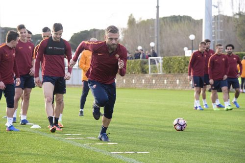 Dopo la conferenza stampa di Spalletti la Roma ha effettuato la sessione di rifinitura. L’allenamento giallorosso è cominciato in palestra mentre sul campo si è lavorato sulla rapidità, con sagome, paletti ed ostacoli bassi. Successivamente una lunga fase tattica, prima col possesso palla 11 vs 11 con portieri e fuorigioco a metà campo, poi con la prova di diversi moduli a tutto campo. L’allenamento si è chiuso con un focus sul pressing prima di provare i calci piazzati e i calci di rigore. In gruppo anche De Rossi e Fazio, out soltanto Florenzi. Il centrocampista di Ostia ha svolto tutta la seduta ed è pienamente recuperato.