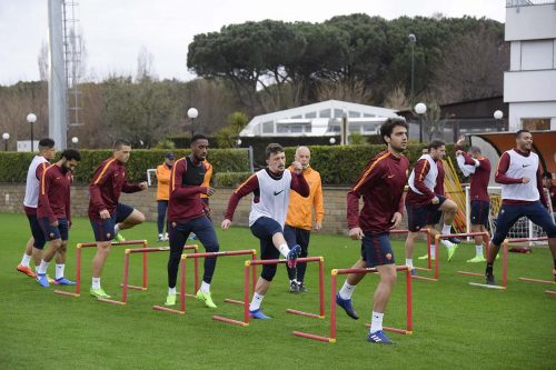 Allenamento mattutino per la Roma che sarà attesa tra poco più di 48 ore dalla sfida contro il Lione. Spalletti, ad eccezione di Florenzi, può far affidamento su tutto il gruppo. La seduta è iniziata con un riscaldamento atletico, seguito da esercizi sull’articolarità e sulla velocità. Successivamente si è passati a lavorare con la palla con un possesso palla. In seguito spazio alla tattica con una simulazione di partita 11 contro 11 a tutto campo. Successivamente si è svolto un focus tattico sulle palle inattive con schemi sia offensivi che difensivi. Infine si è giocata una partita sempre 11 contro 11 a campo ridotto.