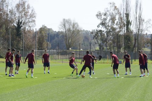 La Roma questo pomeriggio si è allenata in vista della partita di domani contro il Napoli. L’allenamento è iniziato in palestra con un riscaldamento muscolare ed un lavoro sulla forza incentrato sugli arti inferiori. Successivamente i giallorossi si sono spostati sul campo per la parte atletica e tattica.