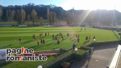 Buon umore in casa Roma che poi ha svolto un riscaldamento atletico con skip alti e bassi. Successivamente si è passati alla parte tattica. Sono stati aggregati al gruppo anche Omic e Nani dalla Primavera.