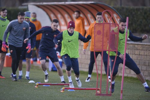Tempo di rifinitura per la Roma che domani affronterà allo stadio Olimpico il Cagliari. La sessione è cominciata in palestra dove il gruppo ha effettuato potenziamento muscolare e riscaldamento atletico. Successivamente i giallorossi sono scesi in campo per continuare il riscaldamento e lavorare sull’articolarità con paletti ed ostacoli alti e bassi. Si è lavorato anche col pallone cominciando con un torello con 3 calciatori in mezzo e 17 fuori, l’obiettivo era quello di compiere 20 passaggi per costringere a fare 20 flessioni a chi si trovava dentro. La sessione è proseguita con una fase tecnico-tattica con una partita in cui si è lavorato in ottica anti-Cagliari, Spalletti ha dato molte indicazioni. L’allenamento è terminato prima con una partitella 10 v 10 e poi con un lavoro tattico su palla inattiva.