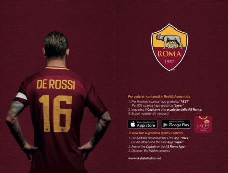Un’innovazione incredibile che ha sbalordito il pubblico intervenuto alla cena e che ha dato la possibilità, a tutti, di portarsi a casa un pezzo della storia della AS Roma; inquadrando lo stemma, infatti, viene riprodotto un video, un best of della prima parte di campionato 2017-2018. La App “2017” è scaricabile per tutti i dispositivi Android dal Google Play, mentre per gli utenti iOS è sufficiente scaricare l’app gratuita Layar. Nei prossimi giorni la riproduzione del pieghevole, distribuito all’evento, sarà scaricabile dal sito di Skylab Studios www.skylabstudios.net. Il progetto è stato ideato da Skylab Studios in collaborazione con DAO spa, sotto la supervisione di Edoardo Ottaviani e realizzato in collaborazione con Utopia Roma, con il project management di Francesca Pompili, le riprese “aumentate” di Daniele De Rossi sono state prodotte nel centro sportivo di Trigoria con la regia di Fabrizio Farroni di Banalizie Produzioni e il prezioso aiuto di Tiziano Crescia. Il tutto grazie alla AS Roma che si è resa da subito disponibile alla realizzazione di questo innovativo progetto in realtà aumentata che vuole avvicinare le distanze tra il pubblico e i beniamini in maglia giallorossa.