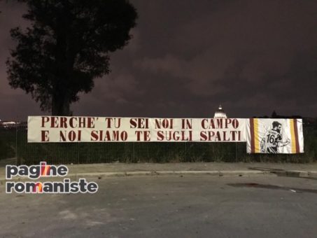 Altro striscione esposto a Piazza Socrate dai tifosi della Roma alla vigilia di Roma-Parma, giorno dell’addio di Daniele De Rossi. Questo il testo dei tifosi giallorossi per il proprio capitano: