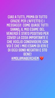 Attraverso il proprio profilo Instagram, il difensore dell’Atalanta ed ex Roma Rafael Toloi ha chiarito la sua situazione di salute, rispondendo alle tante domande dei tifosi. Queste le parole scritte dal numero 2 dell’Atalanta in una storia: “Ciao a tutti, prima di tutto grazie per l’affetto e i messaggi! Come quasi tutti sanno, il mio esame di venerdì è risultato positivo al Covid-19. La cosa importante e che voglio condividere con voi è che i miei esami di ieri e di oggi sono negativi e sto bene!“. Questo il messaggio postato da Toloi.
