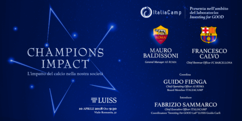 Mauro Baldissoni, dg della Roma, prenderà parte all’evento Champions Impact organizzato per martedì 10 aprile alle ore 9:30 presso la sede dell’Università LUISS Guido Carli di Roma. Insieme al dirigente giallorosso ci sarà anche Francesco Calvo, Chief Revenue Officer del Barcellona. Tale incontro, organizzato in collaborazione con Italia Camp, sarà moderato dal COO della Roma, Guido Fienga.