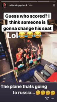 Radja Nainggolan, centrocampista della Roma, tramite una storia sul proprio profilo Instagram ha voluto scherzare postando una foto dell’areo che porterà il Belgio in Russia per il Mondiale. Sull’aeroplano infatti c’è l’immagine di un’esultanza dei Diavoli Rossi dopo un gol proprio del Ninja. Queste le sue parole: