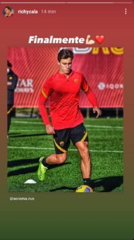 Fonseca recupera Riccardo Calafiori. Il terzino ha recuperato l’infortunio al flessore della coscia destra ed è tornato ad allenarsi con i compagni in vista della sfida contro il Verona di domenica sera. Il giovane calciatore giallorosso ha festeggiato il rientro in gruppo con una storia sul proprio account Instagram, scrivendo: “Finalmente!“.