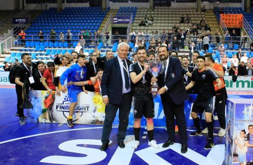 E’ un giorno di gloria per la Roma Calcio a 5: a Faenza, l’Under 19, vince la Coppa Italia di categoria battendo la Fenice Veneziamestre in finale per 4-2. Una partita tesissima che viene portata sul punteggio di 0-0 fino a 2 minuti dalla fine, complici i due portieri che hanno compiuto dei grandi interventi. Il fulmine a sbloccare l’incontro è dei veneti, ma la magia è nell’aria e i giallorossi non possono proprio perdere. A riprenderla per i capelli, a 20 secondi dal termine, è ancora una volta Ibra, premiato poi come migliore in campo del match, che la manda ai supplementari dove non c’è storia. I capitolini mettono il naso avanti con Bortoletto, servito da un delizioso assist di Pagno, e con lo stesso numero 10 vanno avanti di due reti, questa volta grazie all’aiuto di Donadoni che gli mette un cioccolatino con la suola. La partita è in cassaforte, ma a fare la voce grossa è sempre Ibra alla terza doppietta in tre incontri che lo consolida come capocannoniere della competizione. Sul 4-1 la Fenice ci prova ma è troppo tardi per segnare la rete che accorcia soltanto le distanze. La festa può partire, la Coppa è alzata al cielo di Faenza e la coccarda è cucita sul petto della Roma.