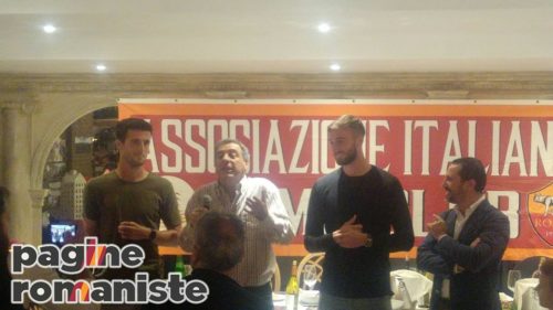 Pagine Romaniste (F.Biafora) – Al Park Hotel Mancini questa sera si svolge la cena organizzata dall’AIRC 1971, l’Associazione Italiana Roma Club che riunisce tutti i club dedicati alla squadra capitolina. All’evento hanno partecipato anche i due nuovi acquisti Ivan Marcano e Bryan Cristante, rispettivamente difensore e centrocampista della Roma. Nell’occasione i due giallorossi hanno rilasciato alcune dichiarazioni. Queste le loro parole: