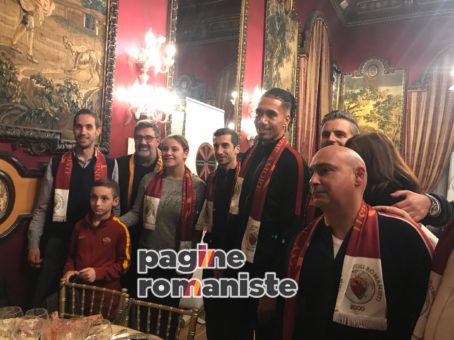 Pagine Romaniste (E.Bandini) – Presso Palazzo Brancaccio va in scena la cena dell’Unione Tifosi Romanisti. All’evento partecipano anche i giallorossi Chris Smalling e Henrikh Mkhitaryan, accompagnati da Sebino Nela. Presenti anche circa 300 tifosi.