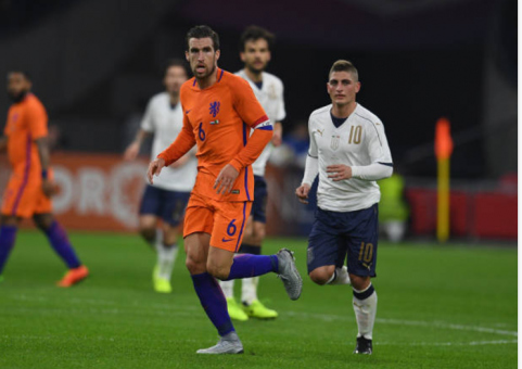 EQUIVOCO VERRATTI – L’Olanda non ha niente a che vedere con la sua storia, d’altra parte per il povero Grim inventarsi rivoluzioni non era possibile. Però in attacco non è malaccio, soprattutto Depay offre un’interpretazione moderna del centravanti di movimento e Promes fa bene a sinistra. Però siamo noi a concedere qualcosa e tutto sembra nascere dalla posizione di Verratti. Il c.t. insiste perché rimanga alle spalle di Immobile-Eder ma il parigino fa fatica, sente il richiamo della foresta, cioè del pallone, e tende ad arretrare per fare quello che sa: impostare basso. Sulla trequarti vaga invece tra le linee senza trovare posizione, spesso spalle alla porta: Strootman in versione centrale, appiccicato dietro, non lo fa respirare. Un paio di belle iniziative, diversi palloni fuori misura, persi, pericolosi. Se difesa a tre dev’essere, che sia 3-5-2 con Verratti «8» tra marcatura e impostazione.