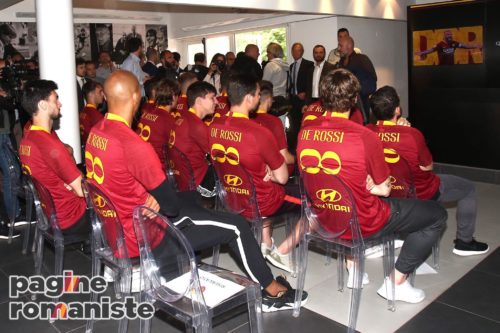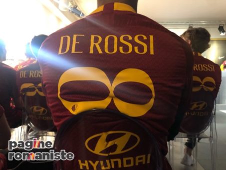 Pagine Romaniste – Un momento epocale quello che si apprestano a vivere i tifosi della Roma: quella con il Parma sarà l’ultima partita in giallorosso per Daniele De Rossi, che lascia dopo 18 anni di militanza. Nella conferenza stampa di oggi, in cui ufficializzerà la notizia, sono state riservate le prime tre file della sala stampa, destinate ai dirigenti capitolini, tutti presenti nel media center di Trigoria, e a tutti i giocatori della squadra, che si sono presentati vestendo la maglia di De Rossi.
