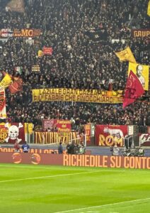 Seppur ormai il derby risalga a circa due settima fa, l’onda lunga degli sfottò continua anche durante Roma-Genoa. Infatti durante il primo tempo la Curva Sud ha esposto uno striscione, citando Compagni di scuola un film di Verdone.