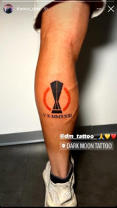 Nel corso dell’ultima partita in Europa League, vinta per 4-0 dalla Roma contro il Servette, ha fatto il suo esordio un giovane talento giallorosso. Si tratta di Francesco D’Alessio. Per immortalare il giorno del suo debutto con indosso la maglia giallorossa, si è tatuato sul polpaccio la data scritta in numeri romani con il logo della competizione europea. A renderlo noto è lo stesso classe 2004 con una storia sul suo profilo Instagram.