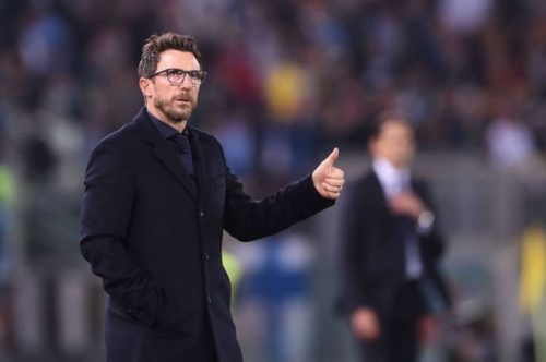 Doppia scenografia da derby, una per tempo, in curva Sud: prima la scritta gialla “Roma” su un tappeto di bandierine rosse, poi le scritte sollevate “L’Urbe siamo noi”. Belli gli applausi storici – mai era successo nella storia delle stracittadine romane – della curva giallorossa per la gigantografia esposta in nord dagli ultras laziali. Per una serata, la sua prima da allenatore, che Di Francesco si gode fino in fondo. «Una grande soddisfazione e vi assicuro che si soffre di più in panchina che da calciatore – l’ammissione del mister abruzzese – speriamo di rimanere per tanto tempo là in alto, nessuno credeva in noi, mentre io credo tanto nel lavoro e voglio entrare nella testa dei miei calciatori, che è la cosa più difficile. Nainggolan? È un vero Ninja, così lo chiamano e questo è. Fino a 8 giorni fa giocava con una lesione muscolare, e oggi ha giocato in questo modo. Che altro termine usare? Forse supereroe». Un po’ di apprensione per Florenzi, uscito per un fastidio al ginocchio destro (non quello reduce da due interventi). «Un semplice problema dovuto a stanchezza, niente di cui preoccuparsi». Una lieve infiammazione, per la precisione. Ora la Roma comincerà a preparare la trasferta di mercoledì in Champions, contro l’Atletico Madrid.