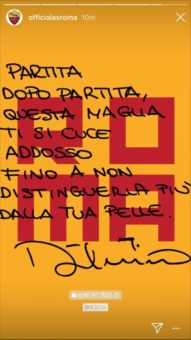 Anche bomber Dzeko ha detto la sua sulla nuova maglia della Roma presentata oggi, come ha già fatto qualche ora fa Lorenzo Pellegrini. Lo fa con una storia su Instagram del club capitolino. Ecco le sue parole: “Partita dopo partita, questa maglia ti si cuce addosso fino a non distinguerla più dalla tua pelle”.
