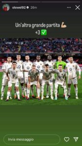 La Roma vince contro il Monza e vola a -1 dal quarto posto. Stephan El Shaarawy, titolare nel match, ha pubblicato una storia su Instagram per festeggiare il risultato ottenuto in questa 27ª giornata di Serie A: