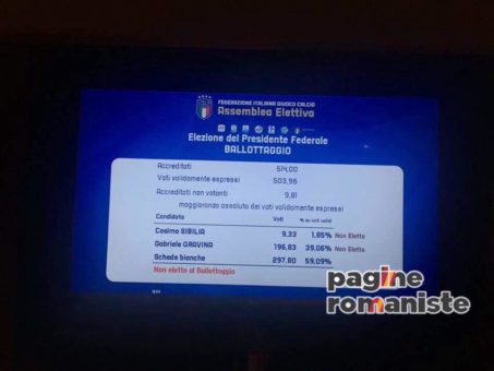Ore 18:55 – Anche il quarto turno di voto dell’assemblea elettiva della Federcalcio è andato a vuoto e non si è arrivato ad alcun risultato nel ballottaggio Sibilia-Gravina. A questo punto si aprono le porte al commissariamento del Coni.