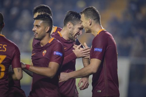 IL COPIONE – L’introduzione della gara non prometteva tanto. Per venti minuti è equilibrio assoluto, ma solo in apparenza. Villarreal e Roma sembrano esercitare il copione voluto: gli spagnoli palleggiano nella metà campo giallorossa stringendo i due esterni nella zona centrale e provando le imbucate con i passaggi spaccalinee di Bruno, la Roma contiene e riparte, anche se partendo da troppo lontano fa fatica a portare uomini in area avversaria. In realtà la squadra di Spalletti capisce così dove far male. Cioè a sinistra. Lì il Villarreal ha un problema strutturale che Escribà ignora, e improvvida pare l’esclusione di Roberto Soriano per il rosso di sabato scorso. Castillejo rientra poco e Mario Gaspar deve preoccuparsi di El Shaarawy, così si apre la notte di gloria di Emerson: sempre molto largo e libero, poco dopo la mezzora scippa l’ingenuo Castillejo e disegna l’arcobaleno del suo primo gol europeo (secondo in maglia Roma) con il piede sbagliato, il destro.