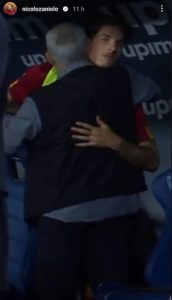 Tornato a sorpresa tra i convocati per la partita tra Empoli e Roma, Nicolò Zaniolo è rimasto a guardare i suoi compagni per tutti i 90′ dalla panchina. Il 22 giallorosso era tornato a disposizione dopo la lussazione alla spalla rimediata nel match contro la Cremonese ed è stato elogiato da Mourinho a fine gara per la sua presenza nonostante i pochi allenamenti alle spalle. Lo stesso Nicolò ha voluto condividere su Instagram uno scatto che lo vede abbracciarsi con Mourinho in panchina segno di un legame sempre più solido tra i due.