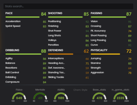 Si presenta con un 86 di valutazione (più uno rispetto al suo ultimo “In Form”) nella posizione di AT, quindi a ridosso della punta. Ibridabile soltanto attraverso una Serie A, visto che la sua nazione non rende facile determinati link, ma comunque molto forte e vedremo perchè. Piccole modifiche ma determinanti. Se la velocità è salita soltanto di uno (da 83 a 84), il tiro ha preso un upgrade di due punti. Valori chiave la finalizzazione che arriva a 83 e la potenza di tiro che tocca quota 94. Sempre ottimi i passaggi con 87 di valutazione finale (pecca ancora in lungo con soltanto 81) e il dribbling che ha 88. Ottima agilità (86) ed equilibrio (89). Difesa e fisico sono valori da tralasciare e che non appartengono a Micki.