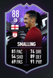 La versione di Smalling ha un overall pari ad 88, uno dei più alti in questa promo di FIFA 21. E’ una carta competitiva ed è il difensore più forte presente in Serie A. E’ anche facilmente ibridabile grazie alla nazionalità inglese per metterci di fianco un Joe Gomez “In Form” o direttamente un’Icon come Rio Ferdinand e Sol Campbell. Tre le voci da tenere sotto osservazione: velocità 81, difesa 89 e fisico 91. Con quella corsa può stare tranquillamente dietro agli attaccanti più veloci del gioco. Roccioso con 96 di forza e preciso nei contrasi con 90 per quelli in piedi. 88 in intercettazione, 90 per la precisione del colpo di testa e 87 nelle letture difensive. Tutti i valori sono al punto giusto. Bene anche nei passaggi perchè ha 82 in corto e 80 in lungo.