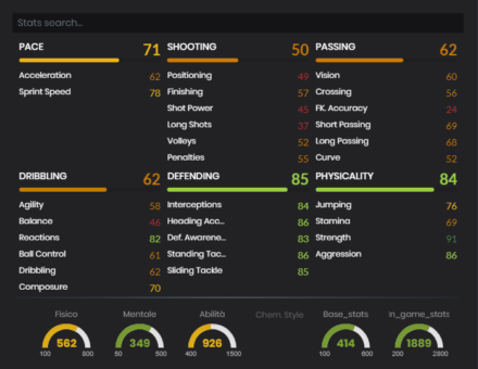 Con 82 di valutazione è comunque una delle carte più intriganti in questa squadra. Le statistiche lo piazzano di diritto nel piccolo lotto dei difensori usabili della Serie A. Costa 28mila crediti, ma questo prezzo è destinato a calare piano piano che la gente lo troverà nei pacchetti, soprattutto nella giornata di domani. Il 71 in velocità è già un valore decente, anche se pecca in accelerazione con 62. Quindi attenzione a non lasciare tanto spazio in profondità perchè si rischia di non recuperare più l’attaccante. Buoni anche i punti in passaggio corto e lungo, rispettivamente 69 e 68. Ottimo l’82 in rilfessi e discreto il 70 in freddezza. La parte succosa arriva quando si parla di difesa, 85, e fisico, 84. Le valutazioni sono da difensore top con l’86 in aggressività a fare da chicca. Avremo uno Smalling che sarà molto vicino all’attaccante avversario potendo recuperare in fretta il pallone, ma soprattutto per non farlo girare e concludere facilmente in porta. Stile intesa da usare assolutamente “ombra” per andare a boostare la velocità .