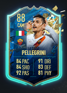 Pagine Romaniste (Y.Oggiano) – Nonostante i tanti alti e bassi della Roma ben due giocatori sono entrati a far parte del “Team of the Season So Far” della Serie A: Chris Smalling e Lorenzo Pellegrini. Dell’inglese abbiamo già parlato ed ora ci andiamo a concentrare sul centrocampista romano che ha una valutazione di 88. La carta non è in meta visto che non ha valori “competitivi“, ma è comunque molto interessante per chi la volesse usare in una Serie A o in una full Roma. Ha avuto un importante upgrade, +6, rispetto alla sua versione “In Form” uscita in autunno.