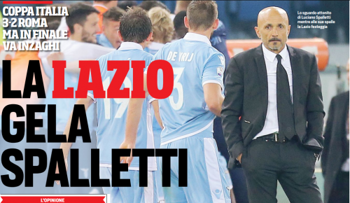 Corriere Dello Sport (A.Polverosi) – Quattro gol alla Roma in 180 minuti, la Lazio va in finale di Coppa Italia e lo fa nel modo che la Nord sognava appena è stato composto il tabellone: eliminando i giallorossi. Che sia una finale meritata non ci sono dubbi, fra l’andata e il ritorno Inzaghi è stato superiore a Spalletti, per scelte e lucidità, e tutta la Lazio ha superato la Roma per tecnica, tattica, concentrazione e rabbia. La Roma ha vinto questa partita quando non contava più, quando la Lazio aveva perso anche Lulic (in campo da infortunato), quando la finale aveva già un nome in attesa di conoscere stasera l’altra sfidante. E’ stata grande la Lazio, per il cuore, per il carattere, per la capacità di soffrire e di non piegarsi mai, né all’andata, né al ritorno. Ieri era il 4 aprile, ma sembrava un altro 26 maggio. La Roma alla fine è stata applaudita dalla Sud, nonostante abbia perso il terzo obiettivo stagionale su quattro. Bravi i tifosi, meno, molto meno la squadra.