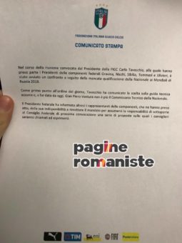 Pagine Romaniste (E.Bandini) – Nella sede della Federazione Italiana Giuoco Calcio di via Allegri, il presidente Carlo Tavecchio ha convocato le componenti del Consiglio Federale per discutere del futuro del calcio italiano e del probabile esonero del commissario tecnico Gian Piero Ventura. Al vertice sono presenti le varie componenti federali: Michele Uva, direttore generale della Figc, Cosimo Sibilia, presidente della Lega Dilettanti, Gabriele Gravina, numero uno della Lega Pro, Marcello Nicchi, presidente dell’Associazione italiana Arbitri, Damiano Tommasi, presidente dell’Associazione italiana Calciatori, Renzo Ulivieri, presidente dell’Associazione italiana Allenatori, e per la Lega di serie B, Mauro Balata.