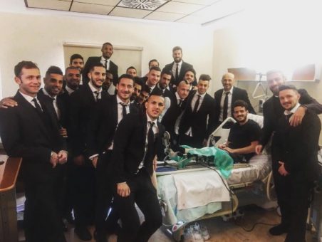 Periodo duro per Alessandro Florenzi che poche ore fa ha subito una nuova operazione al legamento crociato anteriore del ginocchio sinistro. Il terzino della Roma, però, non è solo perché sul suo profilo Instagram posta una foto che lo ritrae insieme a tutta la squadra che lo è andato a trovare nella clinica di Villa Stuart. Queste le sue parole: