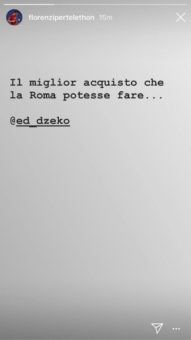 Il rinnovo di Edin Dzeko con la Roma ha esaltato tutto l’ambiente giallorosso, ormai rassegnato a dover perdere il bosniaco. Ha espresso tutta la sua felicità anche il capitano romanista, Alessandro Florenzi, tramite una storia su Instagram. Queste le sue parole:”Il miglior acquisto che la Roma potesse fare“.