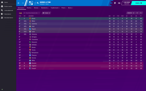 In Champions vince il Liverpool che batte la Real Sociedad, che avevamo sottovalutato nell’episodio precedente (qui). Gli spagnoli erano riusciti a prevalere sulla Lazio grazie ai gol in trasferta. L’Europa League se la aggiudica il Borussia Dortmund contro l’Athletic Bilbao, mentre la Conference League va al Bayer Leverkusen che batte il Villareal con il risultato di 2-0. Piccola curiosità: De Rossi alla fine è riuscito a trovare una squadra e si è accasato al Bari. Qui ha vinto Coppa Italia e Supercoppa di Serie C oltre al campionato. L’anno prossimo si misurerà in serie cadetta. Come già vi abbiamo anticipato, i prossimi due saranno gli ultimi episodi di questa carriera, l’obiettivo è provare a vincere in Europa.