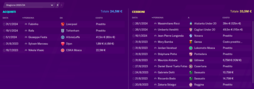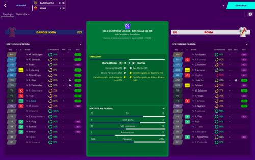 Di miracoli nella storia della Roma se ne sono visti pochi. Quello che succede nella doppia sfida contro il Liverpool è annoverabile tra questi. All’Olimpico finisce 0-0. Il Liverpool domina ma Pau Lopez riesce a tenere la porta inviolata. Al ritorno le cose si mettono malissimo: Dybala al 32′ e Firmino al 33′ portano gli inglesi sul doppio vantaggio. La squadra di Fonseca però non si dà per vinta e inizia a macinare gioco. Al 37′ Moriba accorcia le distanze ma ancora non basterebbe. Nella ripresa è un assedio dei giallorossi che però, inevitabilmente, scoprono il fianco alle avanzate avversarie. All’81’ Nygren prende palla e con un tiro da fuori mette la palla sotto al sette. È 2-2 Roma e passaggio del turno in virtù dei gol segnati in trasferta. Ai quarti di finale il destino beffardo vuole che l’avversario sia di nuovo il Barcellona. In Italia finisce 1-1 con Vlasic che risponde a Boadu. In Spagna i catalani vincono per 2-1 grazie al gol di Bruno Fernandes e cancellano definitivamente il sogno di un trofeo europeo. Alla fine a vincere il trofeo è il Manchester City, in finale proprio contro i bluagrana, e a segnare è Justin Kluivert. L’Europa League se la aggiudica il Chelsea in finale contro Il Bayern Monaco, mentre in Conference League la Dynamo Kiev ha la meglio sulla Lazio per 3-1. Alla fine il bilancio della nostra carriera recita 2 Scudetti e 2 Supercoppe italiane in 5 anni. Sicuramente molto meglio dei precedenti 10 anni. Da segnalare anche due cammini in Europa League, conclusi in semifinale ma che hanno regalato grandi emozioni.