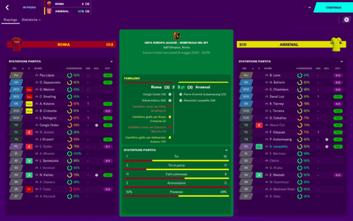 Capitolo Europa League. Con il CSKA Mosca si mette subito bene. La Roma vince 3-2 in Russia e 2-0 in casa e vola agli ottavi. Tra le altre migliori 15, i giallorossi pescano ancora una volta una squadra sovietica, il Krasnodar. Contro i neroverdi ci pensa Dzeko a risolvere la pratica. 1-0 all’andata e 1-0 al ritorno, sempre firmati dal bosniaco. A questo punto i capitolini ci credono anche perché il sorteggio dei quarti li vede accoppiati al Galatasaray che, tra quelle disponibili, è forse la meno forte insieme al Bruges. In Turchia finisce 2-2 con i gol di Dzeko e Mkhitaryan. Al ritorno, in un Olimpico gremito, la squadra di Fonseca si impone per 2-0 grazie alle reti sempre di Dzeko (a fine stagione saranno 9 in Europa) e Zaniolo (12 gol e 3 assist stagionali). La Roma è in semifinale di Europa League. Ad attenderla però c’è l’Arsenal che è riuscita a rimontare il 3-1 subito in casa del Manchester United. Nei giorni precedenti alla partita sui titoli di giornale riaffiora lo spettro di quell’eliminazione ai calci di rigore nel 2009. L’esito del confronto questa volta è forse peggiore. Dopo l’1-1 di Londra firmato Aubameyang e Dzeko, a Roma i nervi saltano con Mancini e Smalling che vengono espulsi nei primi 4 minuti. I giallorossi giocano tutta la partita in 9 ma riescono a reggere botta e al 68′ riescono a portarsi sul 2-2 con Kalinic ma non basta. L’Arsenal è in finale per la regola dei gol in trasferta. Europa League che poi i londinesi vincono contro il Lione (che aveva eliminato la Lazio).