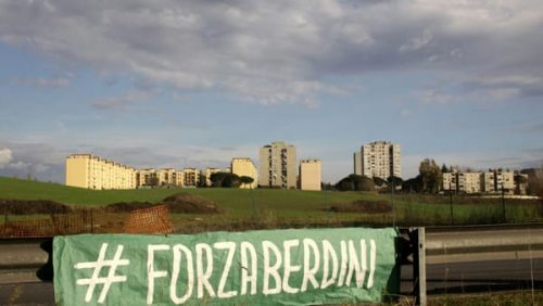 Uno striscione in giro per la città. Con una scritta semplice, inequivocabile “Forza Berdini”. Sullo sfondo le torri dei palazzoni Ater di Tor Bella Monaca, ma anche il selciato dell’Appia Antica. Il centro e la periferia. I luoghi dell’agro romano e quelli dell’urbanizzazione selvaggia.