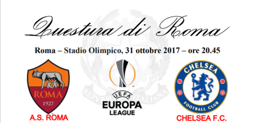 Ci sarà tanto da lavorare per le forze dell’ordine durante la partita tra Roma e Chelsea che prevede circa 60 mila spettatori allo Stadio Olimpico. Intanto, la Questura di Roma, rilascia il file per l’ordine pubblico facendo retrocedere le due squadre in Europa League. Infatti, nel documento, compare il logo della competizione europea minore tra gli stemmi delle due compagini.