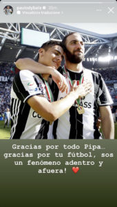 Dybala: “Grazie per tutto, Pipa… grazie per il tuo calcio, sei un fenomeno sia dentro che fuori dal campo!”