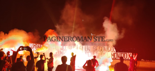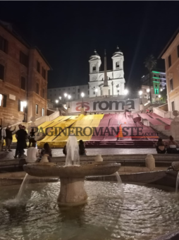 Pagine Romaniste – E’ il 22 luglio del 2020 e l’Associazione Sportiva Roma compie 93 anni. I tifosi non hanno mai smesso di incitare la squadra, anche nei momenti di difficoltà, e questa sera, in giro per la città, hanno fatto vedere ancora il loro grandissimo amore. Piazza di Spagna si è tinta di giallorosso con una gigantesca scritta “as roma” che ricorda il vecchio font della società. Altro striscione appeso al Colosseo che recita: “Sei la torcia che ci illumina la via“. Festa anche tra Gianicolo e Pantheon. Tutto, però, sempre in estrema sicurezza tra distanziamento sociale e mascherine.