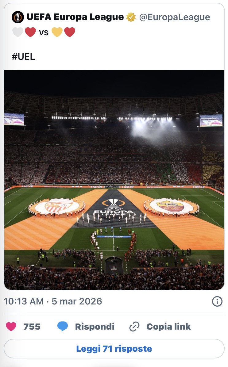 Tutto è nato da una pubblicazione dell’account ufficiale dell’Europa League con una foto dell’ingresso in campo delle due squadre prima della finale del 2023. Nei commenti molti tifosi della Roma hanno ricordato il discusso arbitraggio di Anthony Taylor durante la sfida contro il Sevilla, alimentando nuovamente il dibattito su quell’episodio.