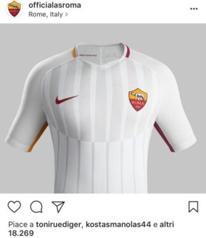 Negli ultimi giorni Kostas Manolas sembrava destinato a lasciare la capitale, ma una frenata nella trattativa con lo Zenit potrebbe far saltare la sua cessione. Nel frattempo il difensore greco, molto attivo sui social network, ha espresso il suo apprezzamento per la nuova seconda maglia della Roma, comparsa su Instagram, lasciando un ‘like‘ sotto l’immagine postata dal profilo ufficiale della società giallorossa.