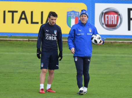 Prime prove tecnico-tattiche di 4-3-3 per la Nazionale italiana guidata da Gigi Di Biagio, in ritiro al centro tecnico di Coverciano per preparare la prima delle due amichevoli di prestigio in programma venerdì a Manchester contro l’Argentina (il martedì successivo test con l’Inghilterra a Wembley). Dopo una prima fase di riscaldamento atletico fra palestra e campo, il c.t. della Nazionale ha diviso la sua squadra in tre gruppi, facendo svolgere esercitazioni su campo ridotto, e successivamente ha messo di fronte due squadre entrambe disposte con il 4-3-3. La formazione con la pettorina arancione vedeva in porta Buffon, in difesa Florenzi, Bonucci, Ogbonna e Darmian, a centrocampo Parolo alternato a Cristante come interno destro, Jorginho in regia e Bonaventura interno sinistro, in attacco Cutrone punta centrale con ai suoi lati Candreva a destra e Insigne a sinistra; per i blu Donnarumma in porta, difesa con De Sciglio alternato a Zappacosta a destra, Rugani e Ferrari centrali e Spinazzola a sinistra, centrocampo con Gagliardini in regia, Pellegrini interno destro, Verratti interno sinistro e in attacco Immobile e Belotti che si sono alternati come punte centrali, con Chiesa a destra e Verdi a sinistra. Domani ancora una doppia seduta di allenamento a Coverciano.