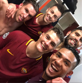 Juan Jesus, difensore della Roma, ha pubblicato su Twitter due immagini che lo ritraggono insieme ai suoi compagni di squadra intenti a celebrare la vittoria contro il Barcellona: “Questa è Roma! Grandi ragazzi!” in cinguettio del brasiliano.