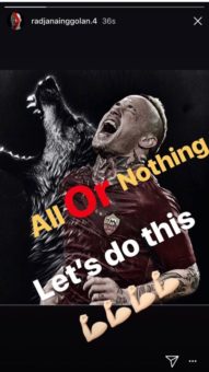 Si avvicina la sfida importantissima, valida per l’accesso ai quarti di finale di Champions League, tra Roma e Shakhtar. In questi giorni la squadra ha ricevuto messaggi di sostegno dai tifosi e dai dirigenti ma anche gli stessi giocatori hanno cercato di caricarsi tra di loro. Oggi Radja Nainggolan, per esempio, ha pubblicato una storia sul proprio profilo Instagram dove dice: “O tutto o niente. Passiamo il turno!“.